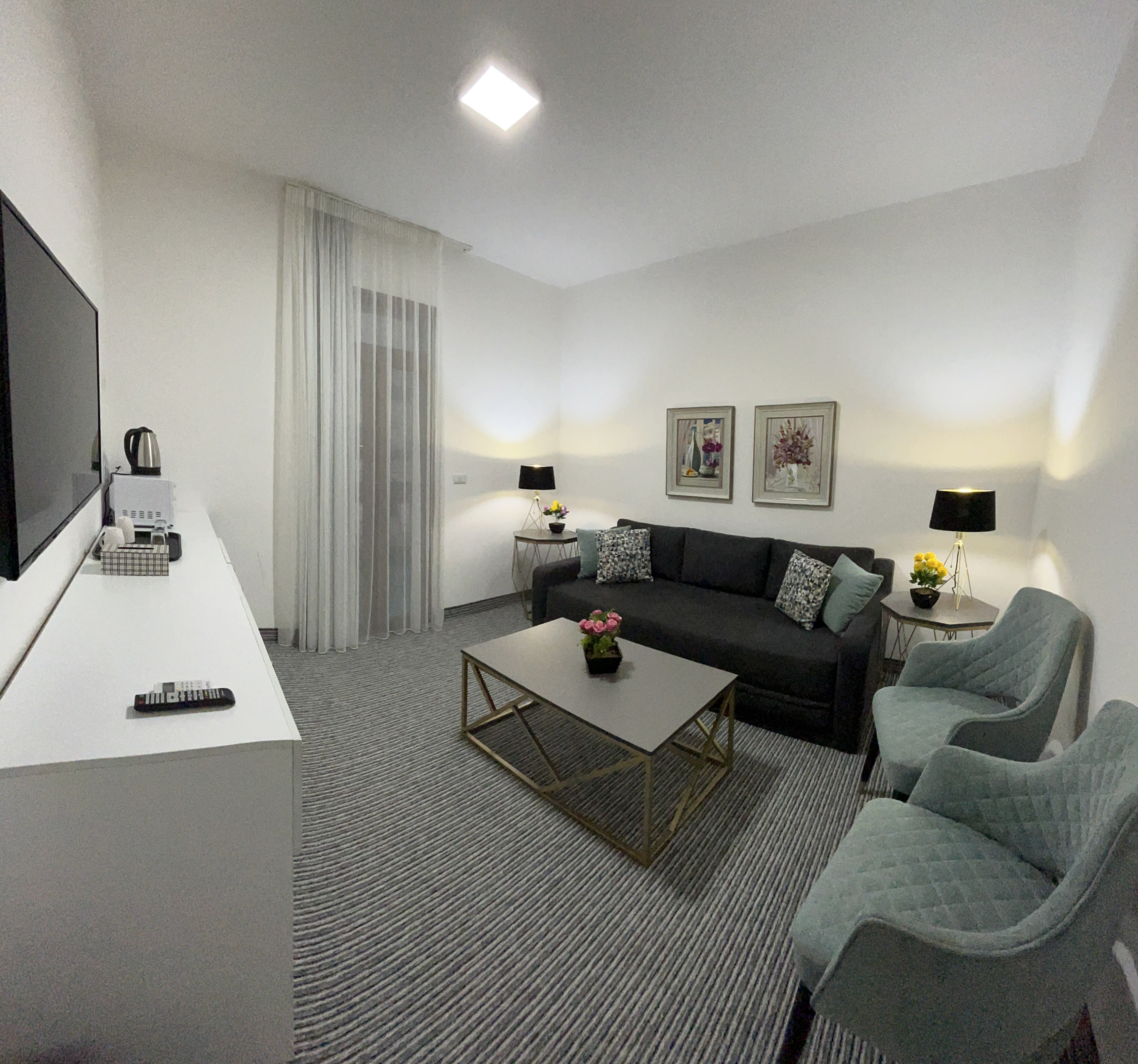 Our Rooftop Suites are located on the 8th floor and are 37 sqm in size featuring a private bathroom, sitting area with a sofa bed and Smart TV, and one bedroom with a twin/double bed with a wardrobe and mirrored dressing table.